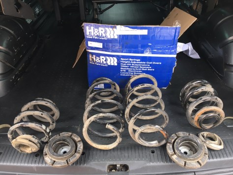 I made a phone call to http://www.chillijamvans.co.uk/ and had a really interesting conversation about what springs to buy. It was decided that I needed pack 4 heavy front & heavy rear. These arrived on Thursday when I promptly took it to Paul’s to have them fitted.  4 springs, 2 rear Spring cups, 2 new drop links and 2 top mount bearings.