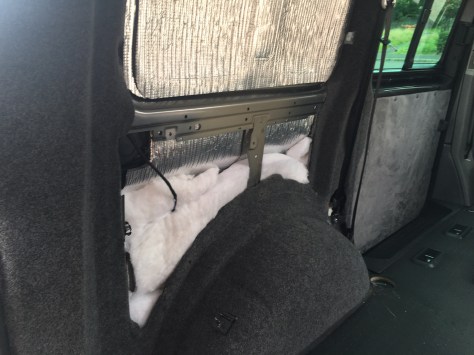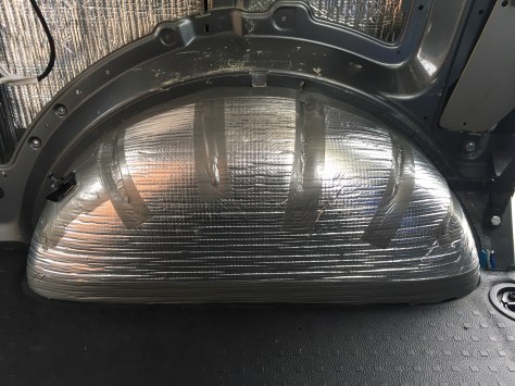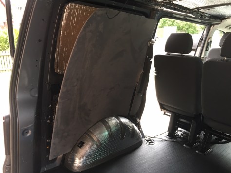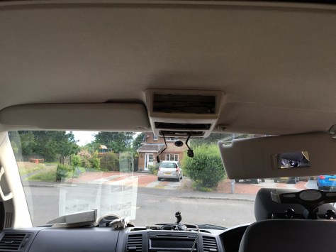 During the week I thought to myself that I should use up the extra ‘thermoliner’ that I had. There seemed like enough to either insulate the front doors or the cab roof. I decided the cab roof was getting it. Once again thoosands of bits had to come off but with the help of my beautiful wife we got it done. One small snag, I thought I wrecked the courtesy light. Upon further investigating and the trusty VW t5 forum I found out it was just a fuse.