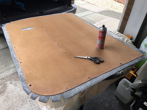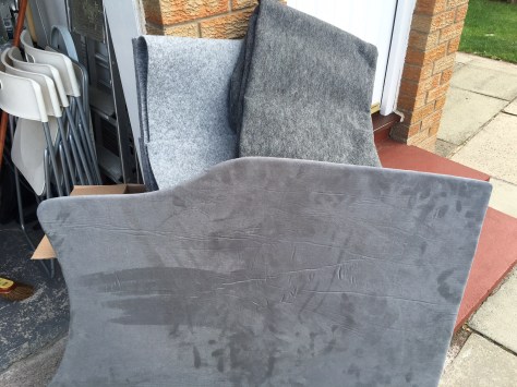 After phoning them again and speaking to someone else I got the Suedeliner sent through. The last panel is covered ready to go on…. All I need are the other clips… Maybe Monday.