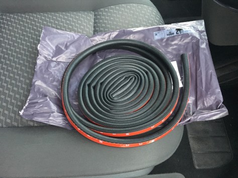 Part 2 of this was to instal another layer of ‘weather seal’. Apparently Caravelle’s and Shuttle buses have these as standard. The wonderful world of eBay once again coughed up a supplier – D-shaped 4M Car Truck hollow rubber Seal Strip. £9.98 delivered. Easy enough to put on. In fact I’m going to order another two and put them on also. It has made such a difference to the noise/rattle, it’s amazing. I’m not sure if it does actually “sound like a golf” but it’s better by a mile.