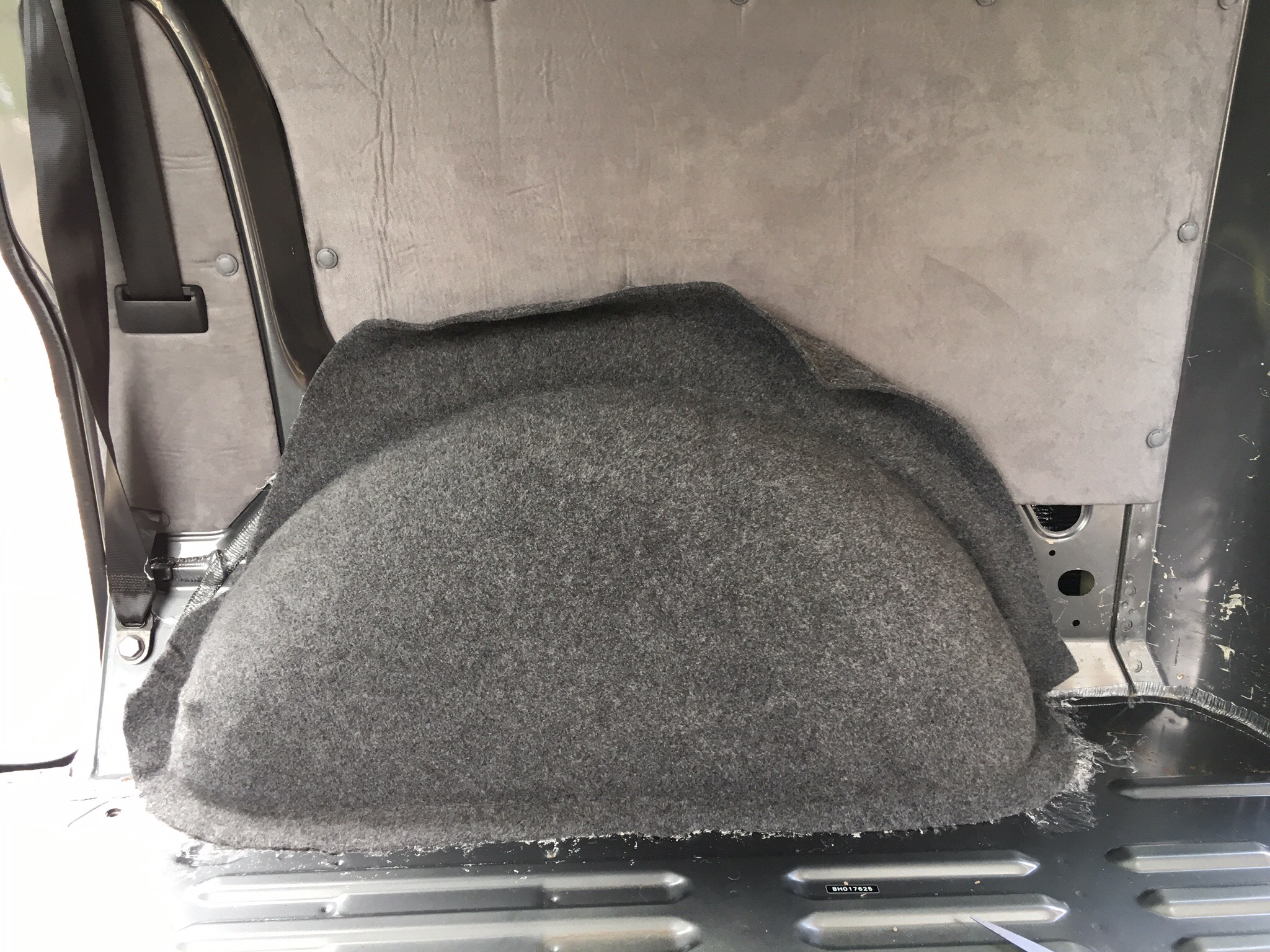 More new clips were ordered from Harrisons and another metre of Suedliner for the other sliding door. I also ordered a metre of ‘Easyliner’in Graphite to cover the newly sound deadened/insulated wheel arches. Do you ever get that feeling that the person on the other side of the phone isn’t quite getting it?! Needless to say the wrong order came through. I received Veltrim in light Grey instead of Suedeliner. … Idiot!