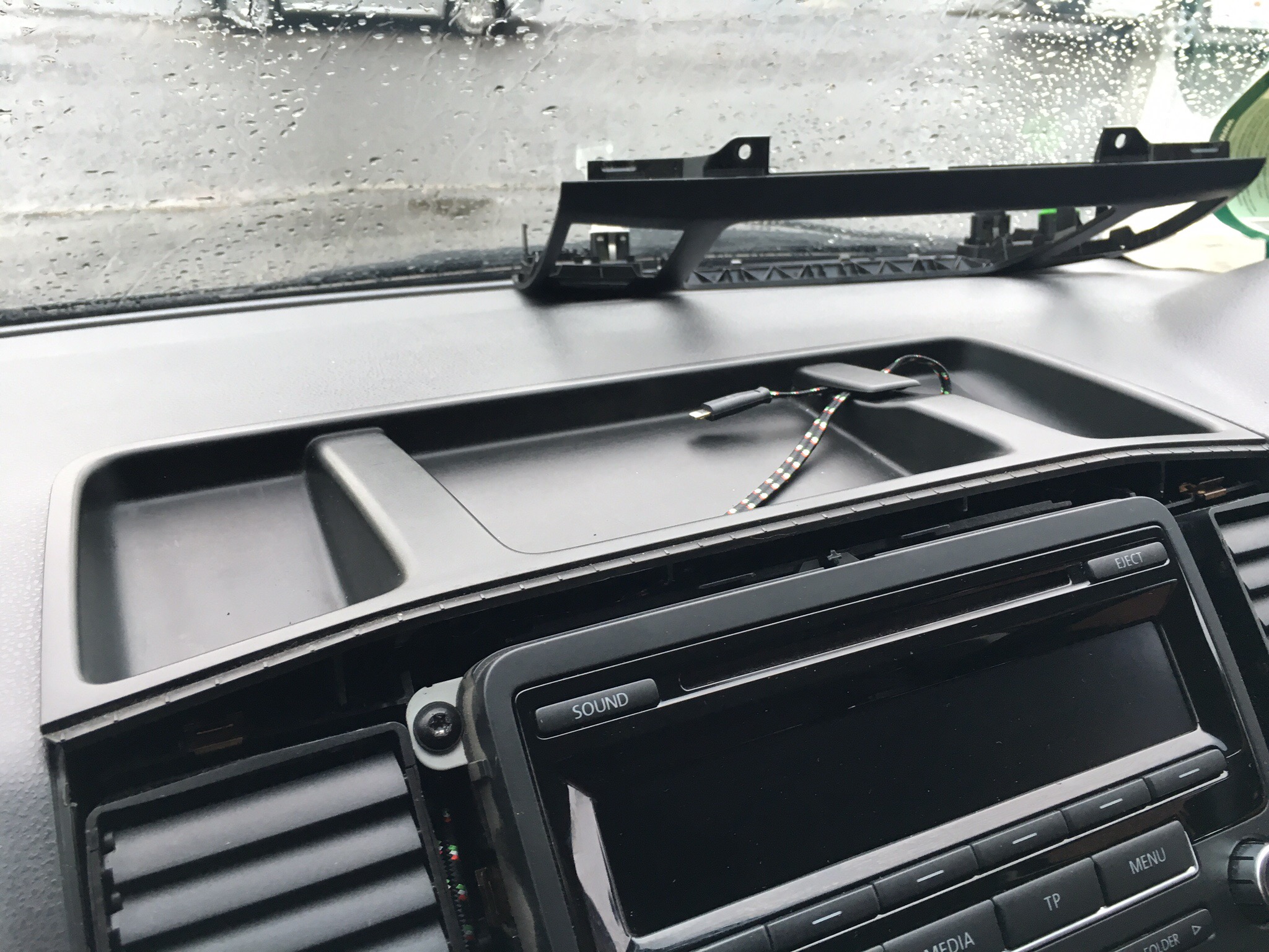 Whilst I had everything off I decided to run a charging wire for my phone up to the top tray. It will look a lot neater when I have my phone/satnav in my CD slot mount.