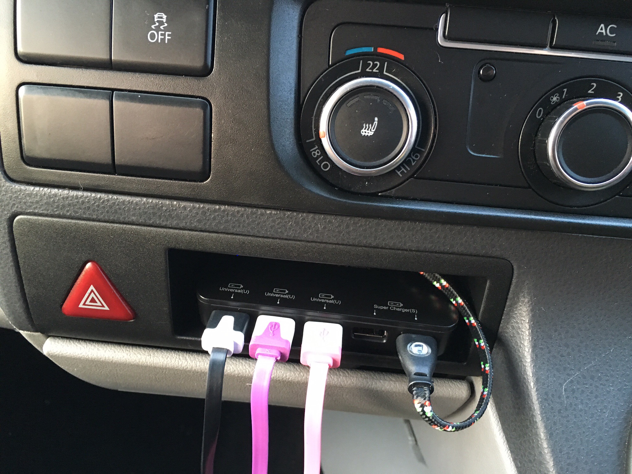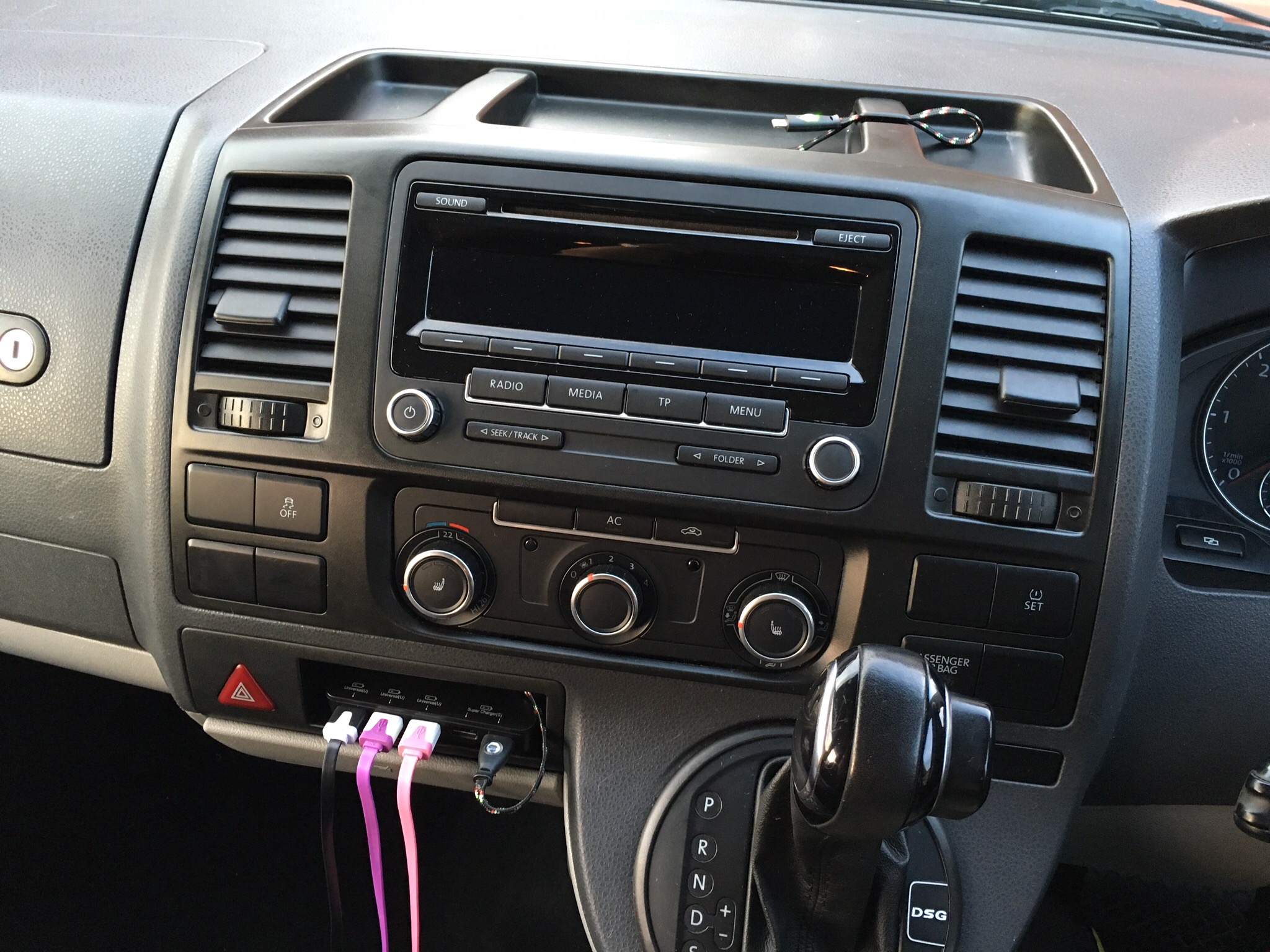 It seems that everything runs from USB now. I’ll never understand why car manufacturers insist on installing 12v sockets instead of USB’s. The final gadget to be installed was the multi USB socket. It can charge 5 devices at one time and even offers 2 fast charge ports. Once everything was back together I had to take the kids and their devices to see if it actually did what it says it would…. Guess what, it did. A neat install to keep us all charged up on our long trip to Portsmouth on Thursday.