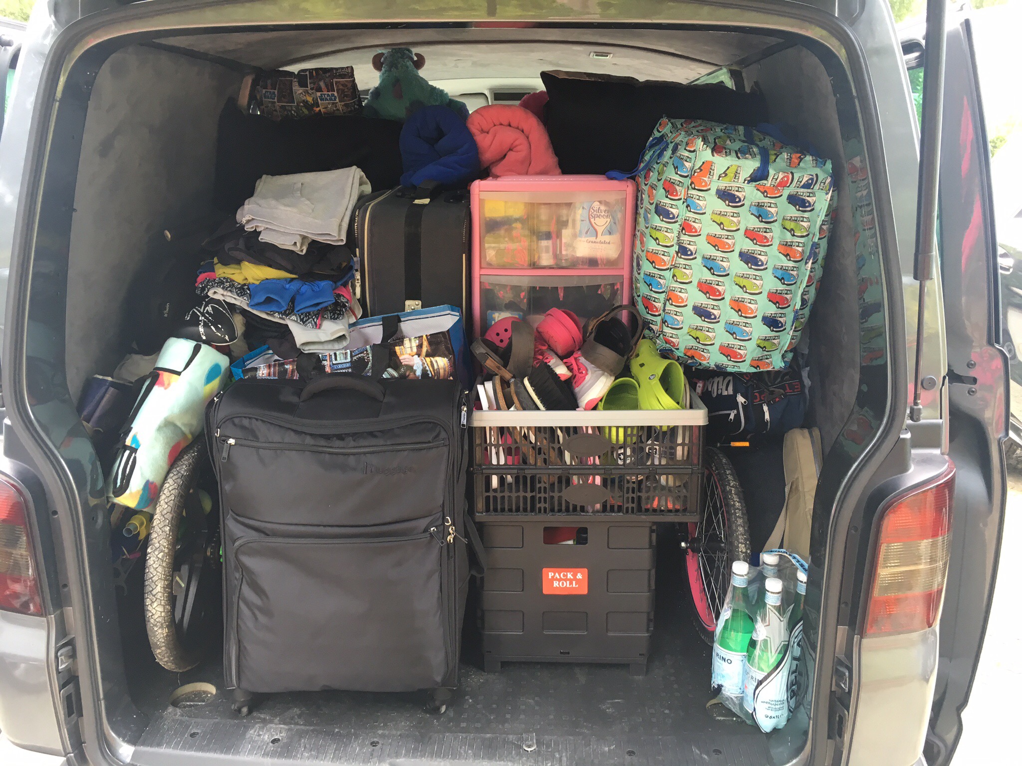 If it hadn’t been for Tosh taking Serena to the campsite with his family, emptying his car and coming back for us we would have been snookered. S-max packed with everything we could fit …. Sadly wee Esther’s pink drawers had to stay 😏