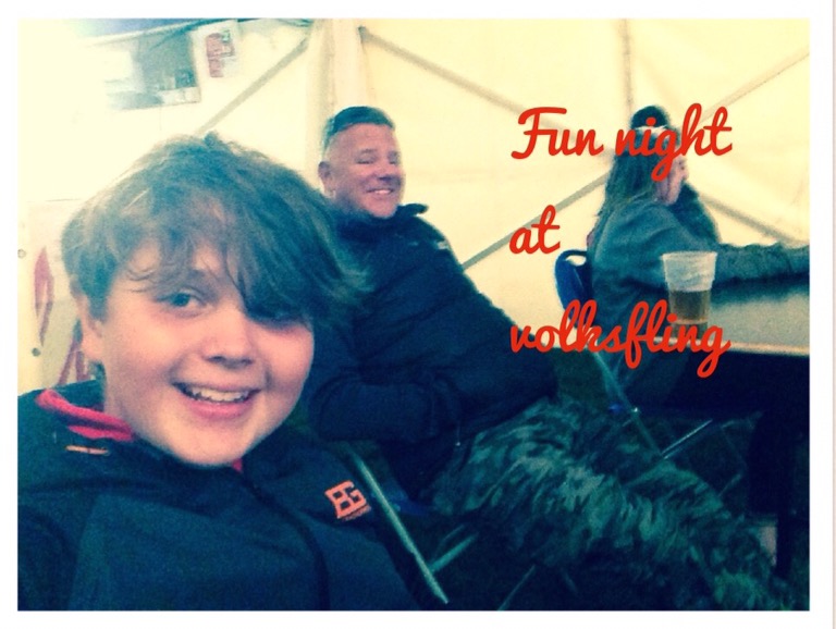 We got a pitch fairly near the toilets where our neighbours seemed friendly enough. The weather stayed dry-ish. We visited all the stalls, had some food, chilled on our new Vango seats – http://www.vango.co.uk . We took a walk into Bigger for a fish supper for tea then came back and went to see and hear the live bands on at night. Had a few pints….. me not John!
