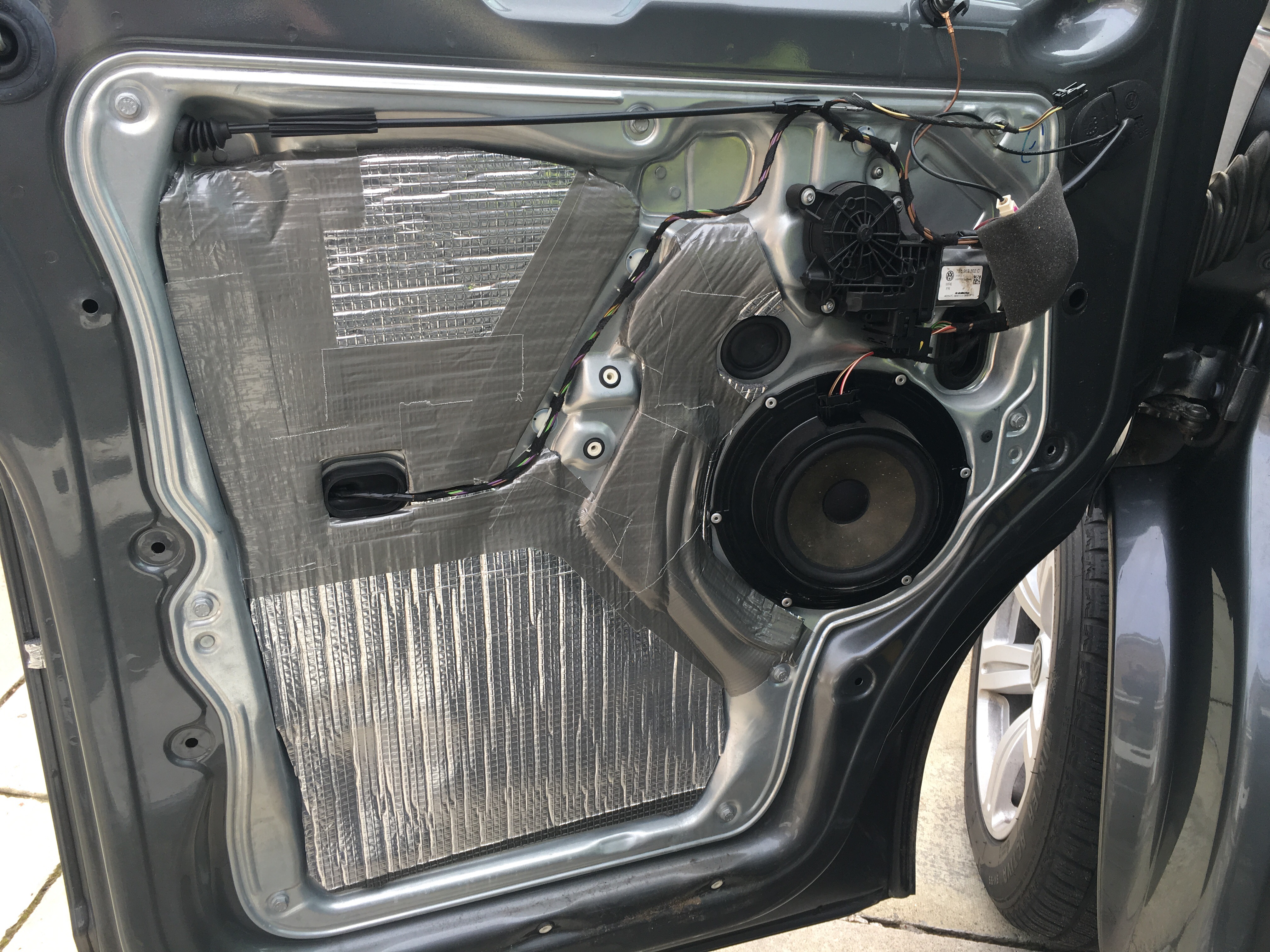 One of the jobs that I completed towards the end of the summer was sound insulating the doors, (drivers + passengers). It was a little hassle removing the door cards but proved to be worth it when I achieved the finished result. The drivers door ‘rattles’ a bit when driving. I’m hoping that this will help solve an annoying problem.